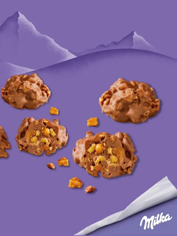Ζάχαρη, βούτυρο κακάο, καλαμπόκι, άπαχο γάλα σε σκόνη, κακαόμαζα, ορός γάλακτος σε σκόνη (από γάλα), φυτικά λίπη, συμπυκνωμένο βούτυρο, αμύγδαλα (1%), συμπυκνωμένο άπαχο γάλα με ζάχαρη, αλάτι, γαλακτωματοποιητές (λεκιθίνη σόγιας, λεκιθίνη ηλίανθου), εκχύλισμα βύνης κριθαριού, αρώματα, παρασκεύασμα ορού γάλακτος (γάλα).